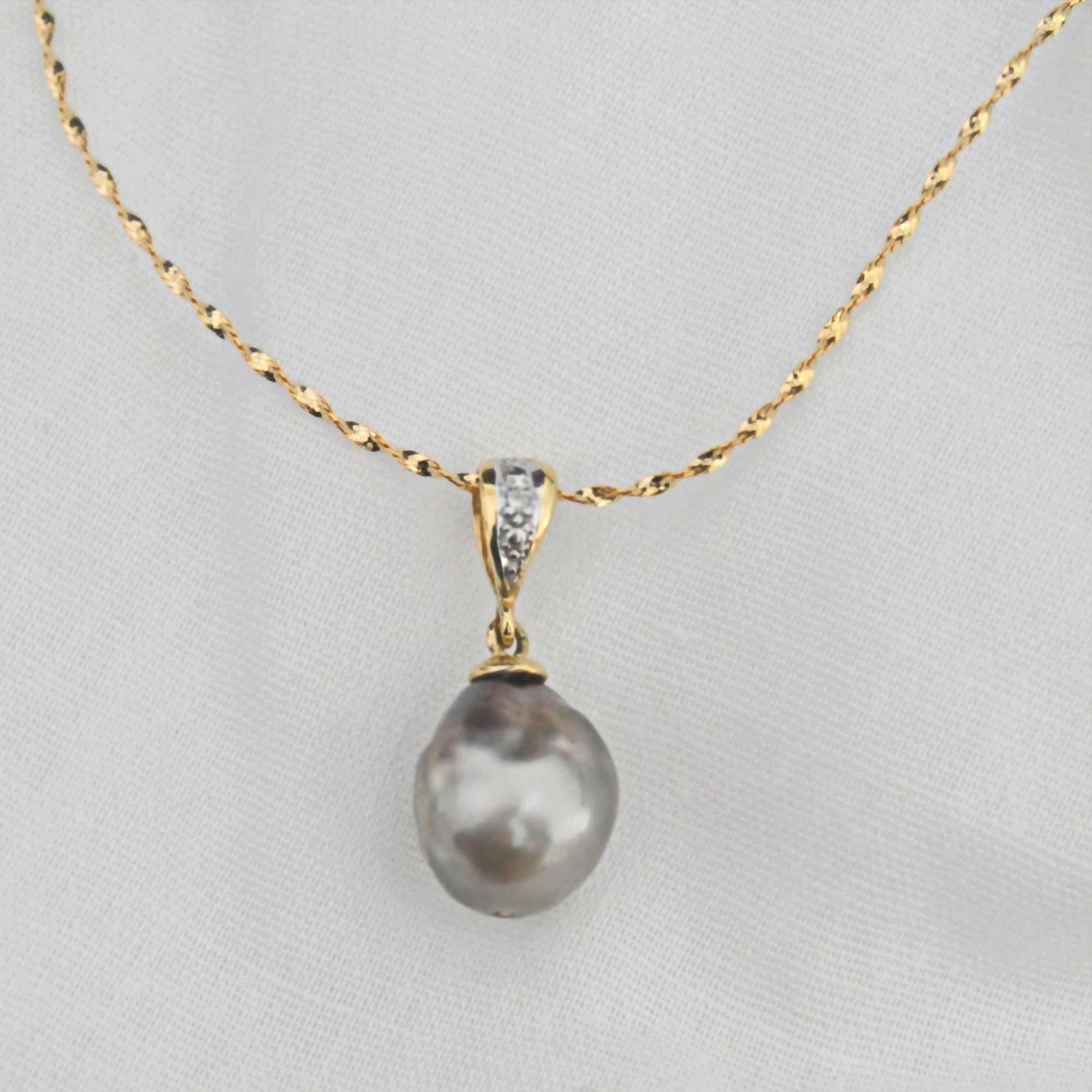 Ally - Baroque Tahitian Pearl Pendant with 14k Gold Diamond Accent