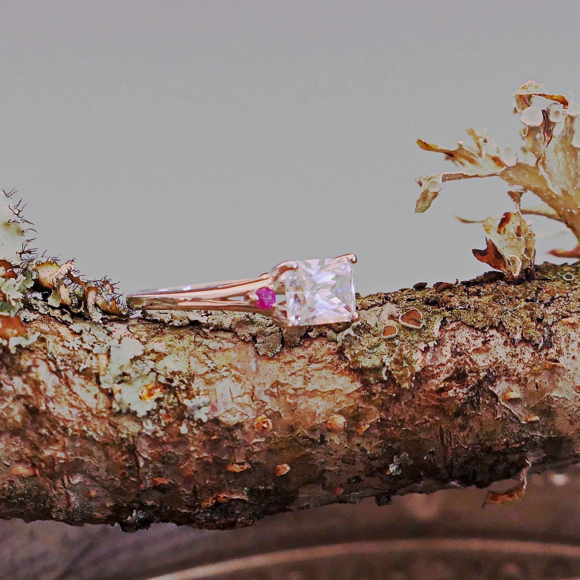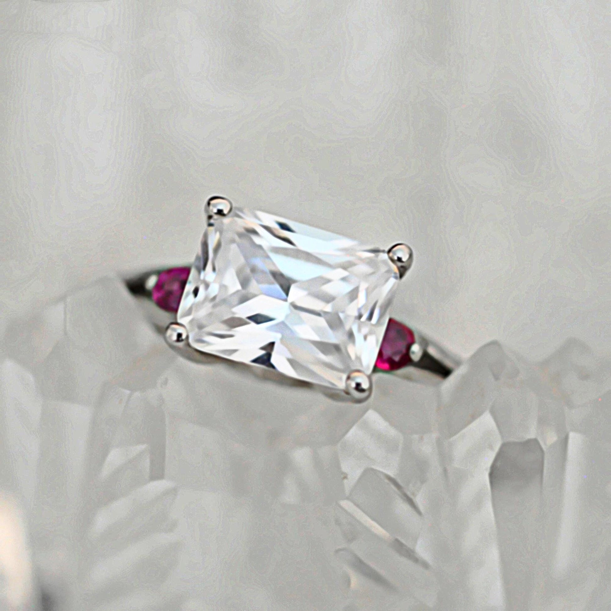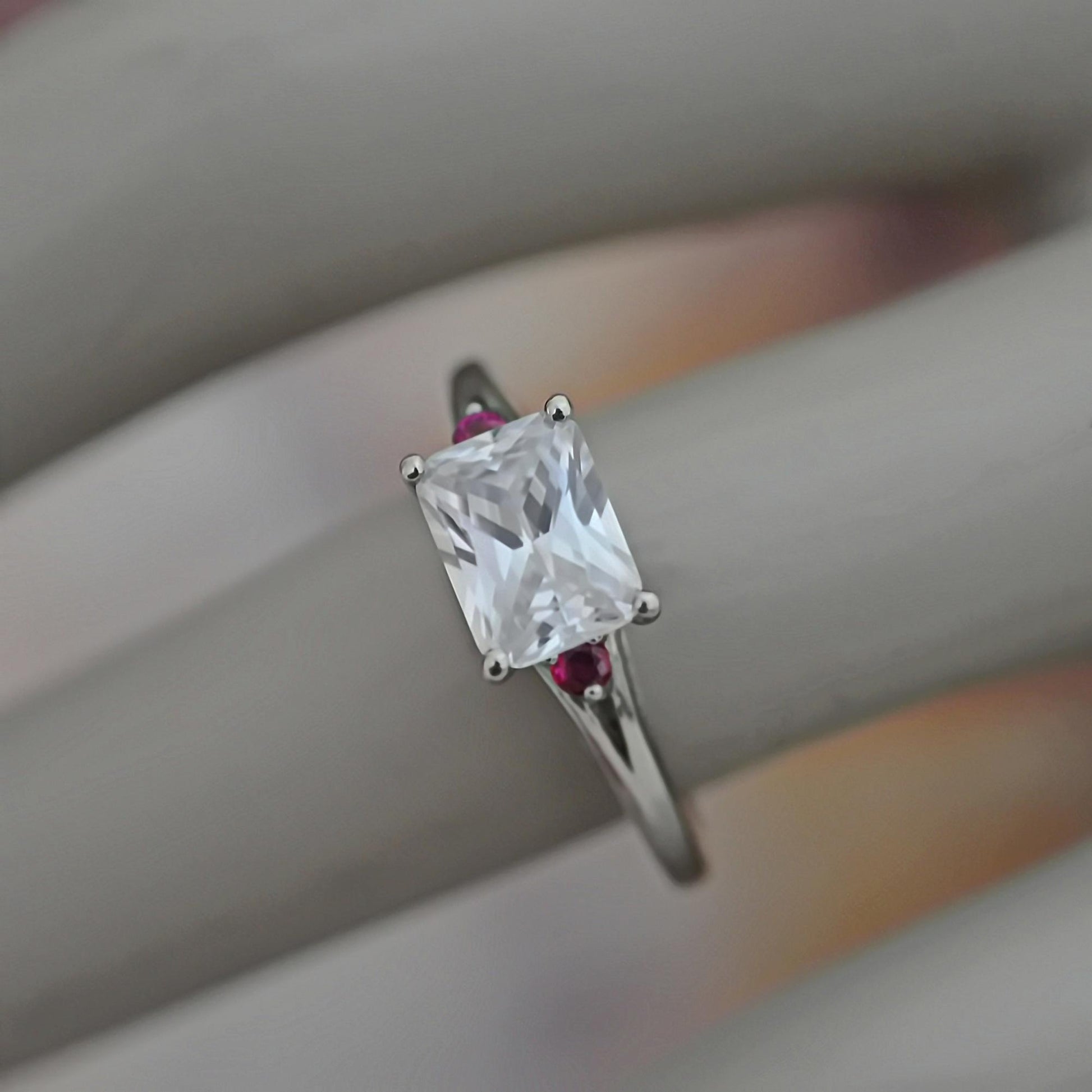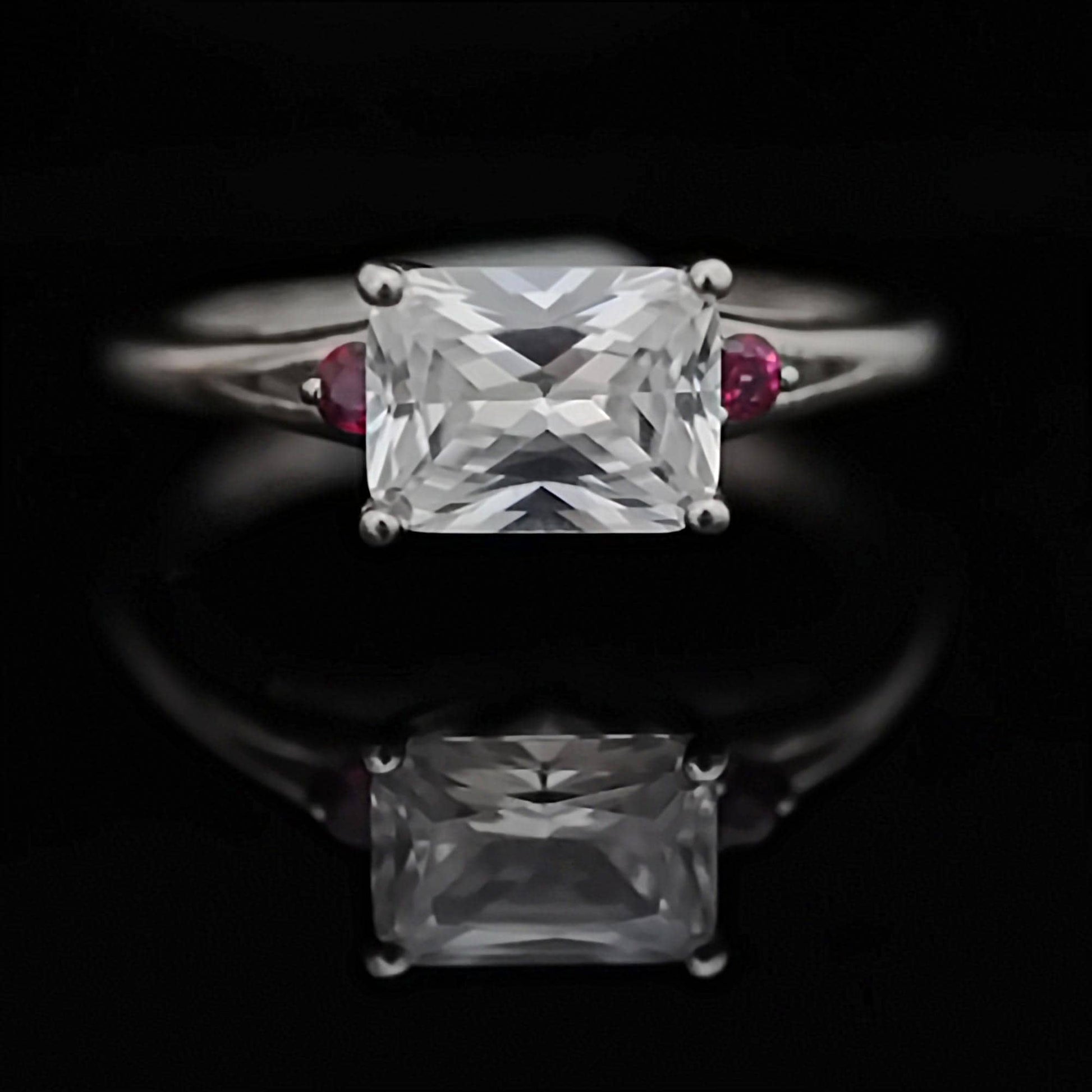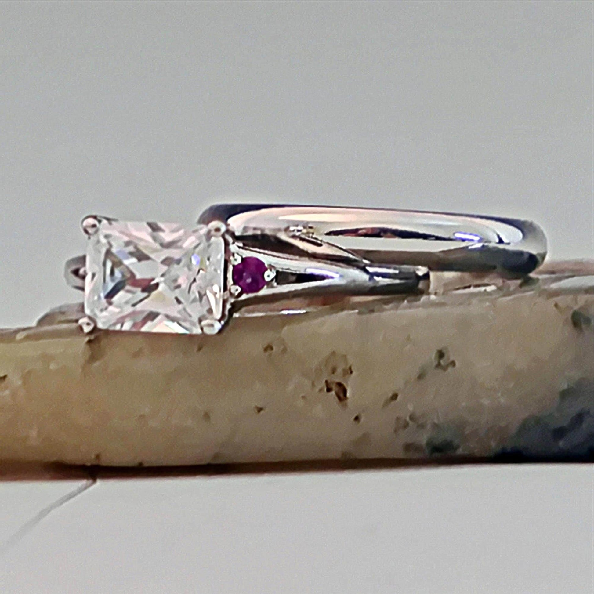 Calla - Elegant diamond alternative engagement ring, cubic zirconia and ruby engagement or stacking ring set in solid sterling silver. FREE SHIPPING US. Can be made to order.