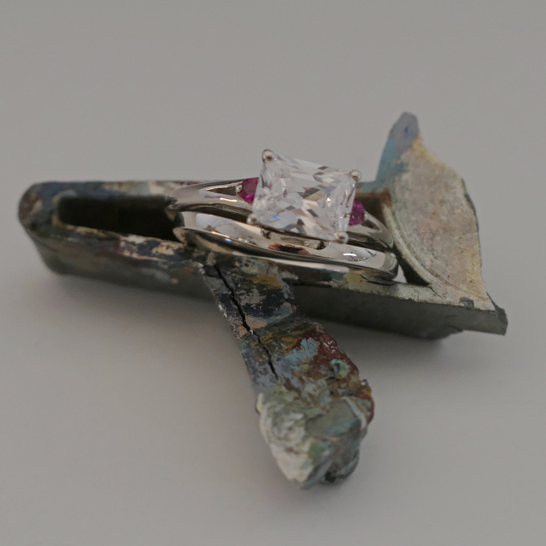 As a courtesy to my customers who prefer white metals, I always send along an anti-tarnish tab and a polishing cloth with your order. The tab should be kept with your ring when it is being stored. It will not prevent tarnish but will inhibit it from forming, and will not harm your gemstones.