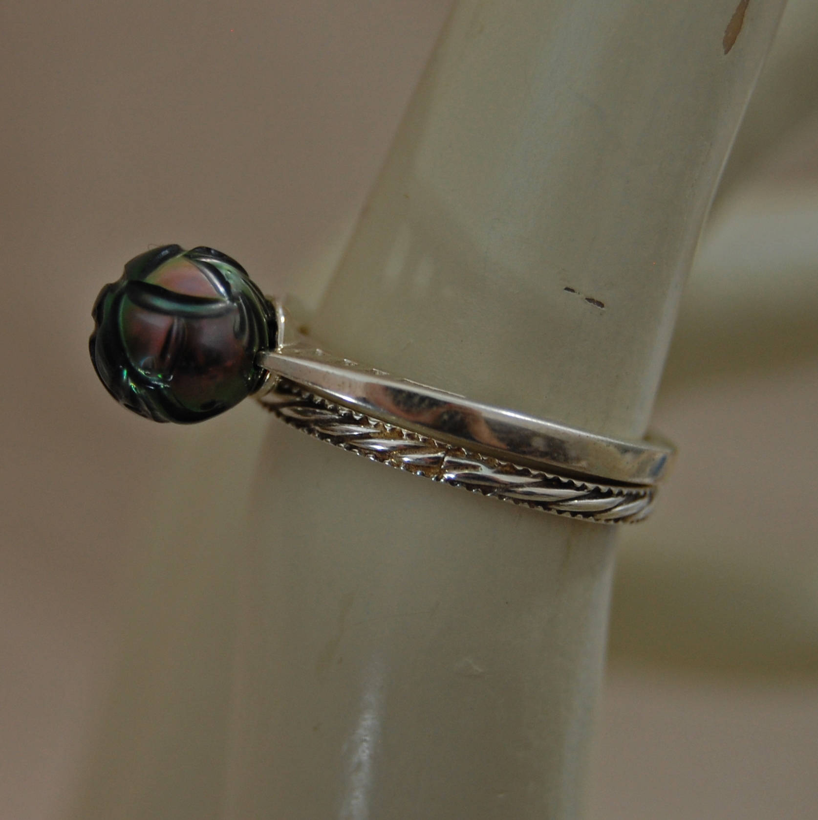 Ebony - Pearl Ring Features a Carved Tahitian Pearl, Set in Solid Sterling Silver, FREE SHIP US