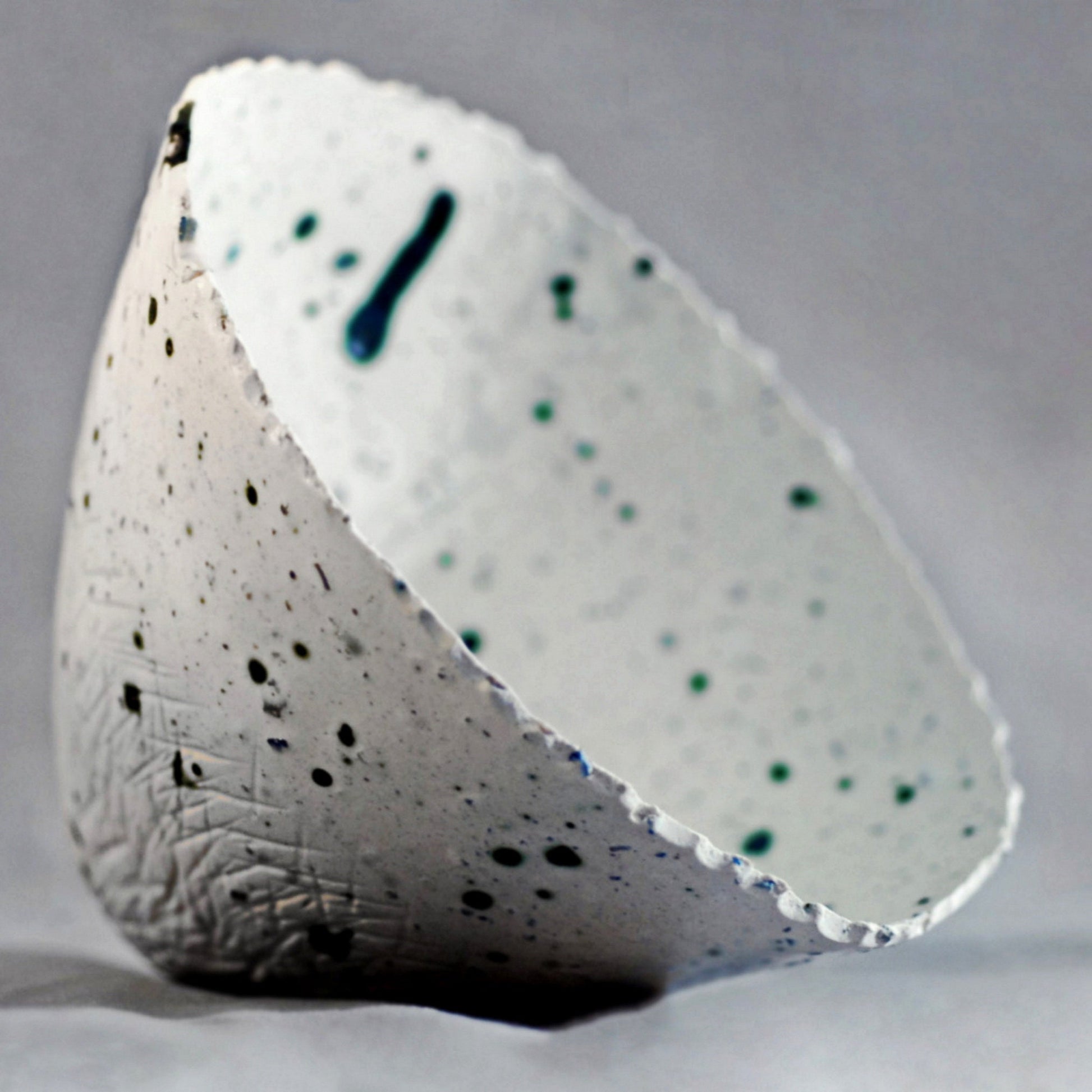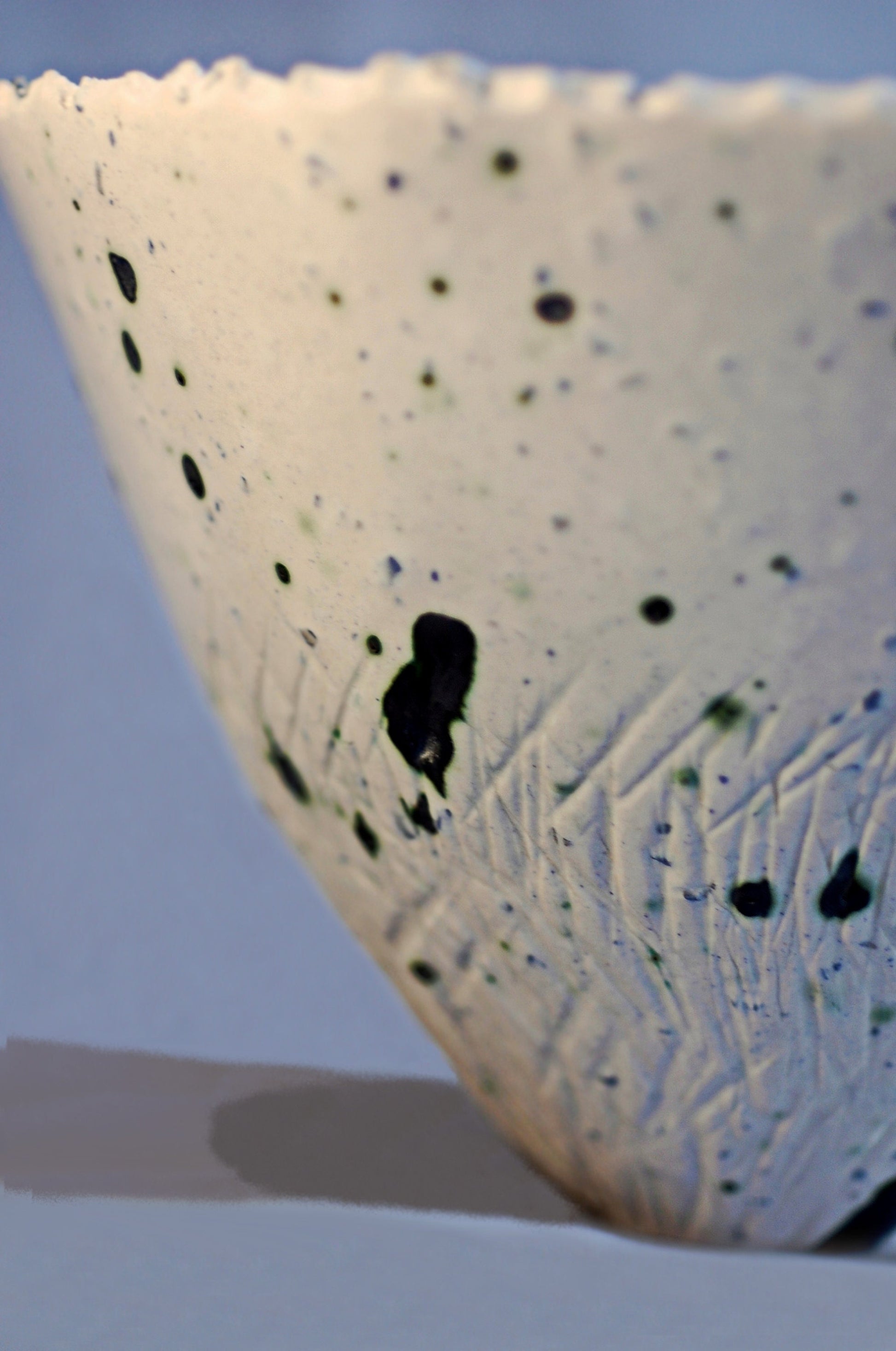 Ingrid - ONE OF A KIND (OOAK) small white porcelain bowl, hand made ceramic bowl, pottery bowl, with blue porcelain shards and genuine Lapis Lazuli gemstone inclusions. Rim has been "pinched" finished for textural effect. Pot is clear glazed. #P1817 FREE SHIPPING WITHIN UNITED STATES.
