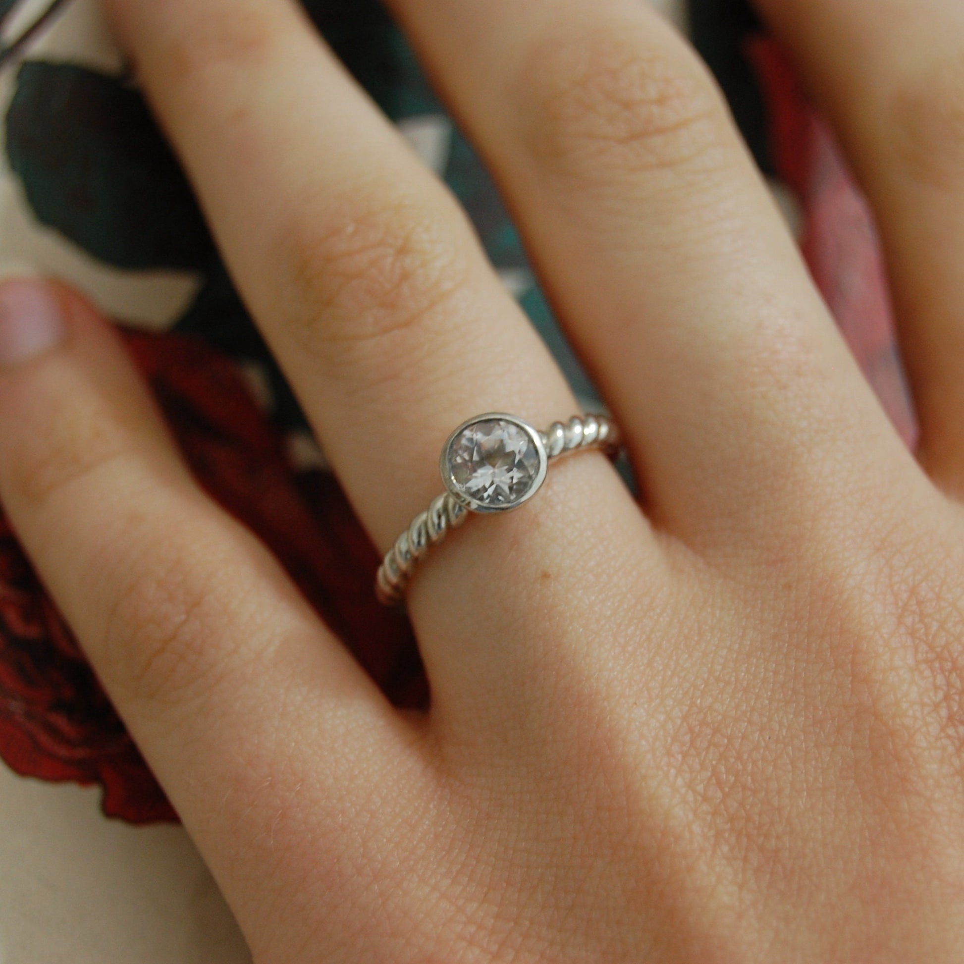Kira - Make a statement with this beautiful 6mm natural earth mined very pale pink Morganite brilliant cut round gemstone ring set in solid Sterling Silver with Rhodium plating. Flawless. Finger size 7. FREE SHIPPING WITHIN THE US.
