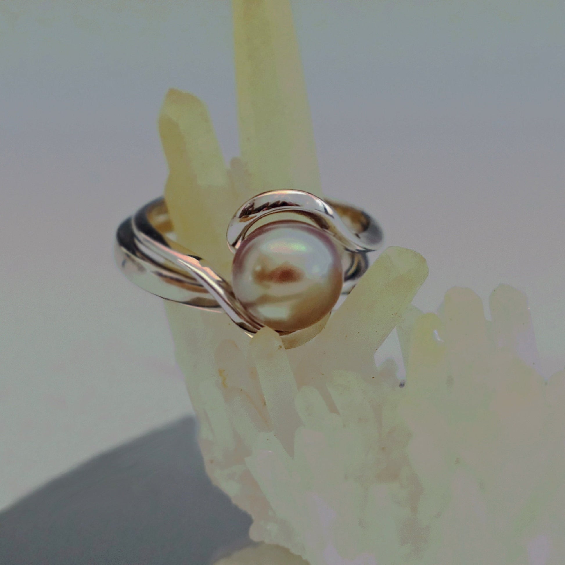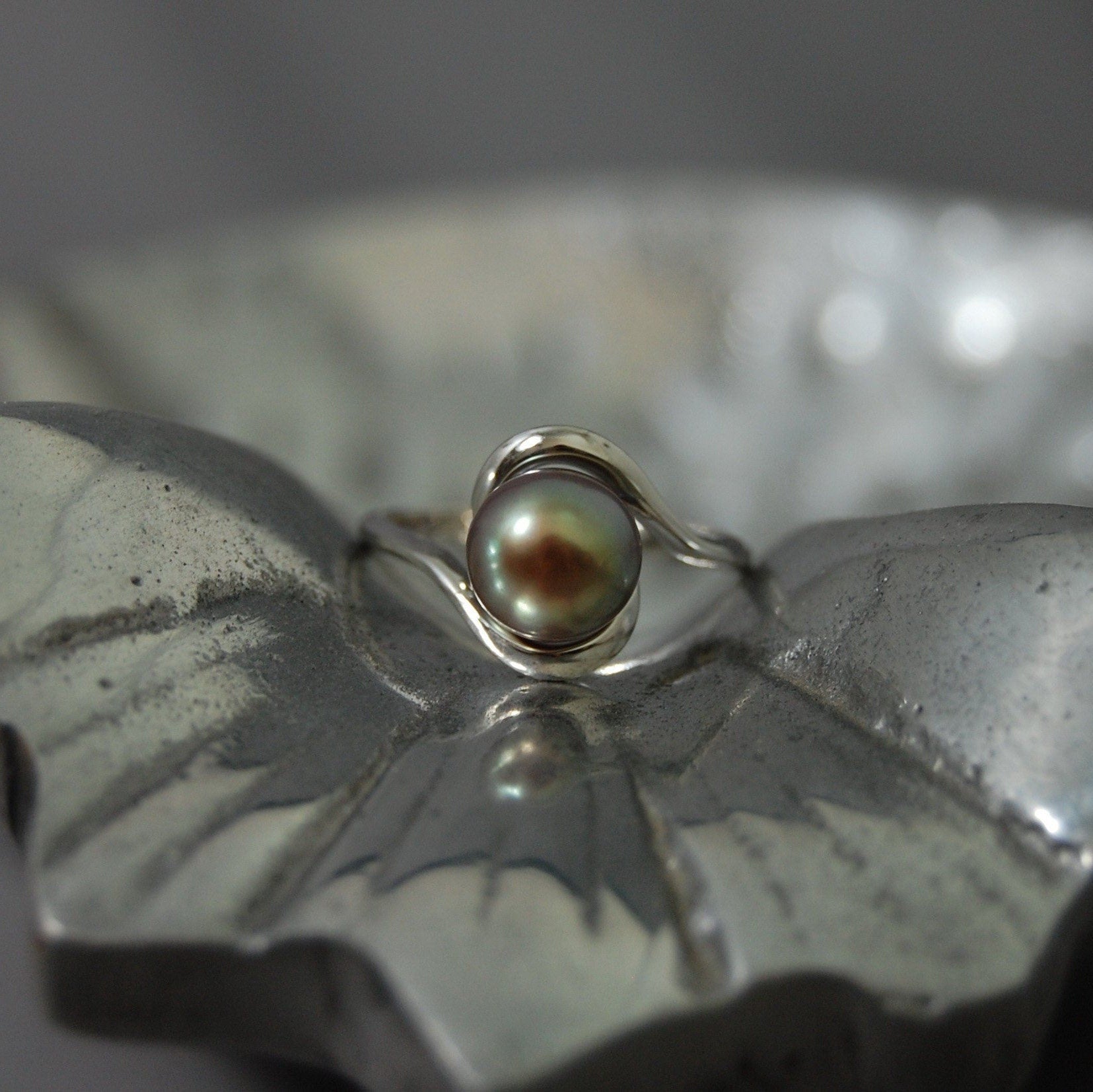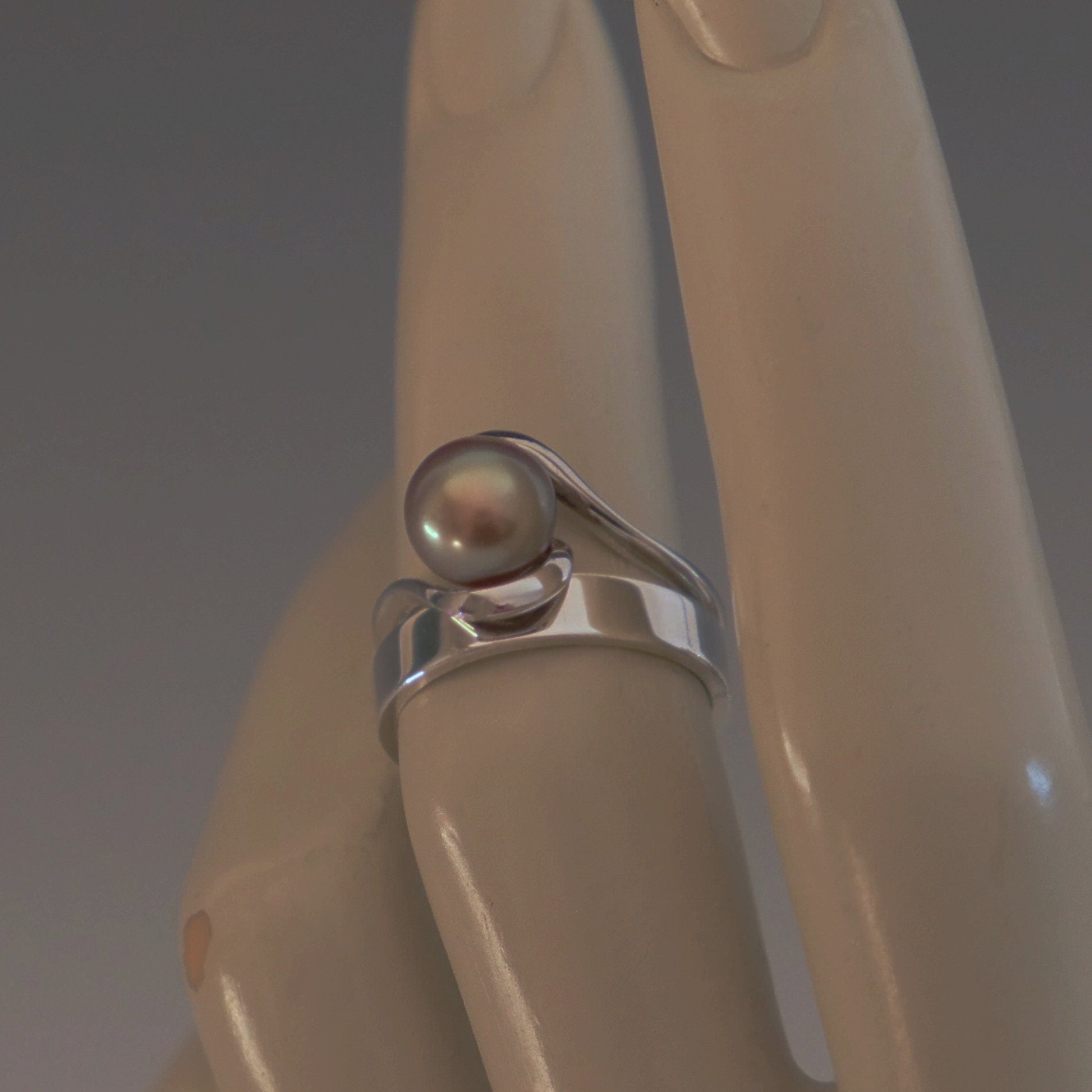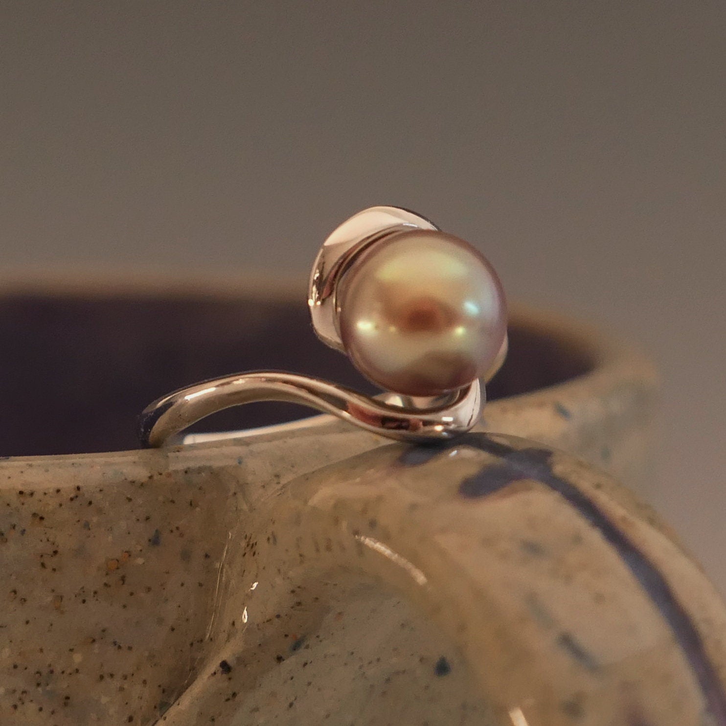 Lakshmi - Solitaire pearl engagement or stacking ring: Beautiful and rare, natural and untreated