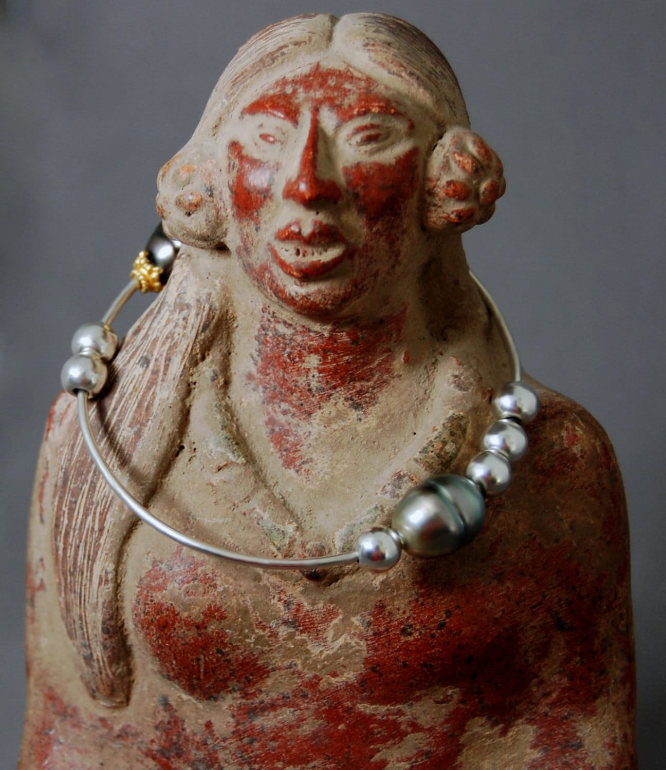 Lola is fascinating and beautiful with a natural and confident presence all her own. She plays well with others. Stack her with other pearl, silver or gold bangles. Dress her up or dress her down - your choice.