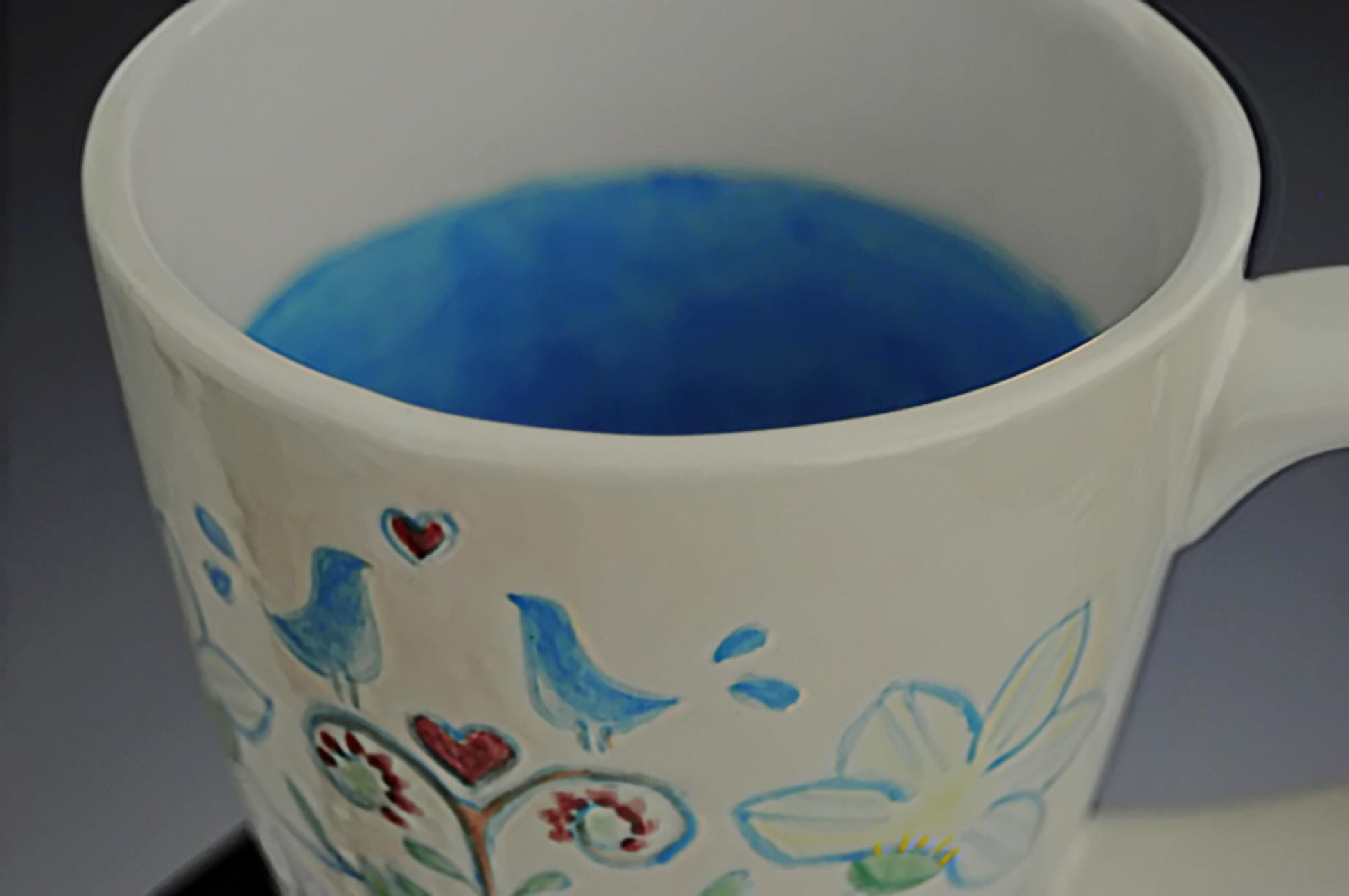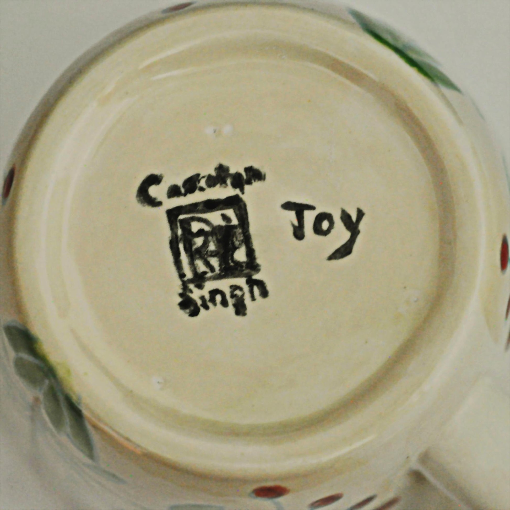 Add a touch of folk charm to your morning routine with this handmade pottery mug. Crafted with care and attention to detail, this mug is a one of a kind vessel. Whether you're sipping your favorite brew or relaxing by the fireplace, this pottery mug is sure to bring comfort. Love Birds would make a cozy gift for yourself or someone you care about.