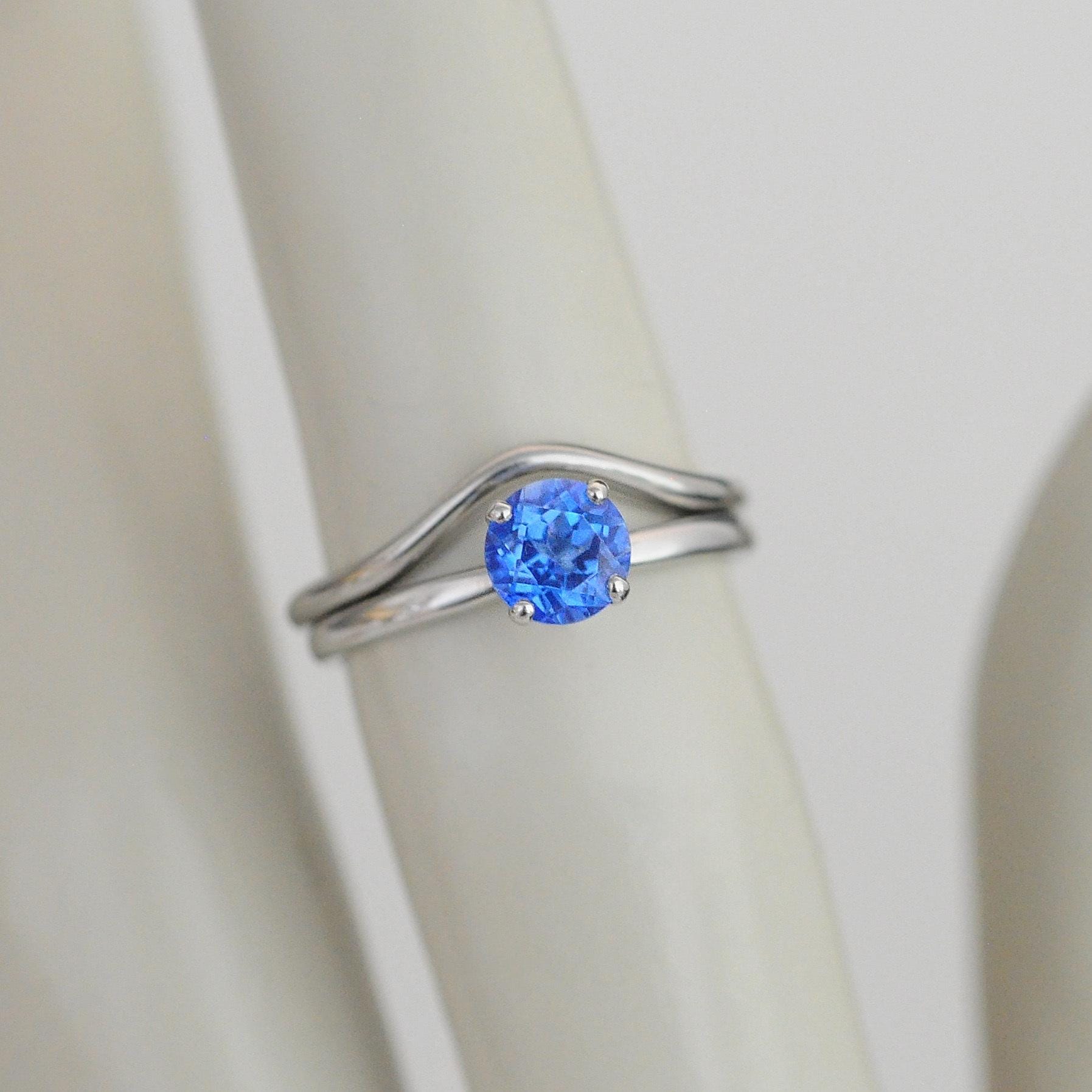 Makynna - Bright and beautiful Glacier Blue Topaz gemstone solitaire ring. Set in solid sterling silver, Rhodium plated for ease of care. Shipping is free within the US. This color is rare as its no longer made. This striking ring could be used as a unique promise, engagement, wedding, November birthstone, or stacking ring.