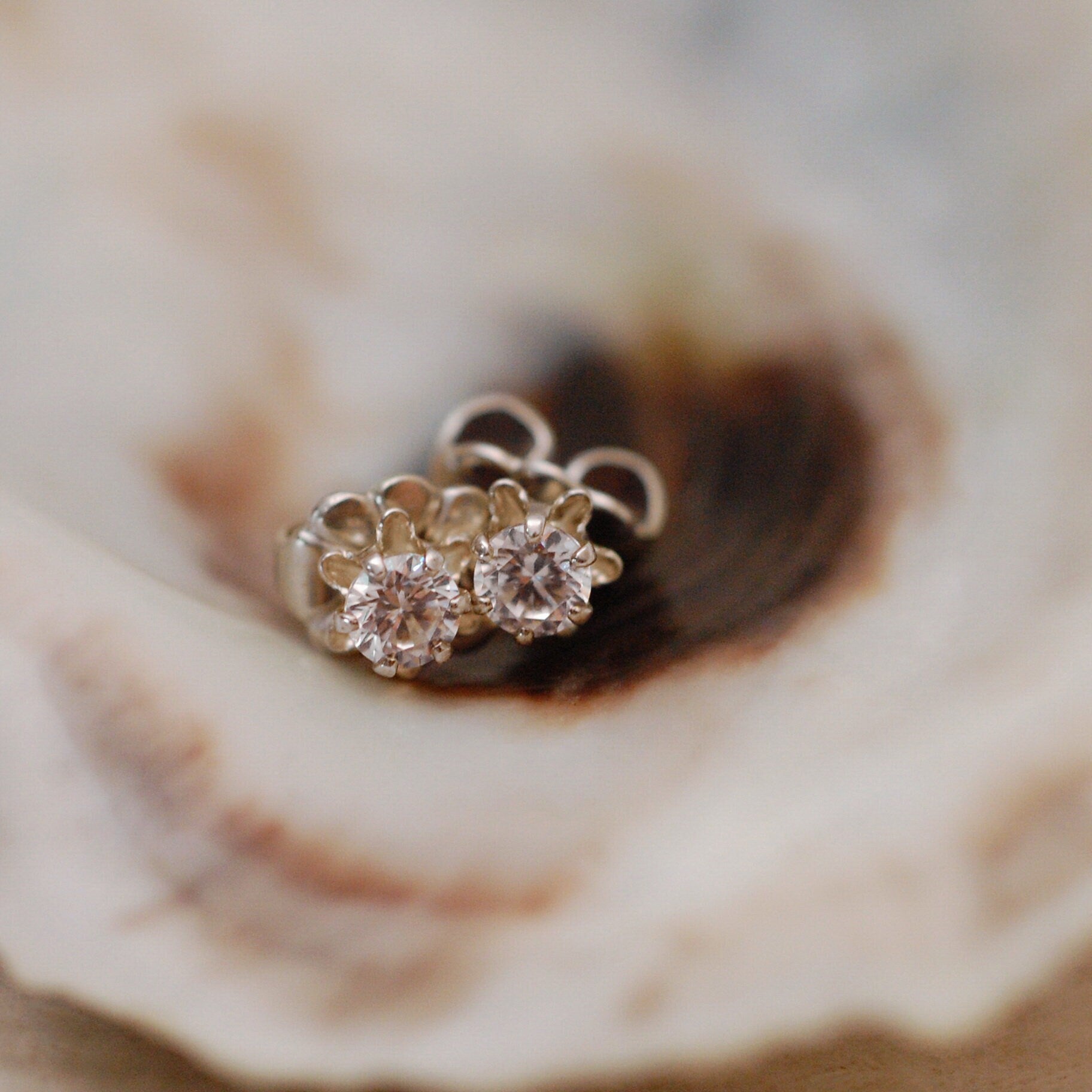 Stella - Mini Cubic Zirconia stud earrings set in sterling silver. Diamond alternative. FREE SHIPPING within the United States.
