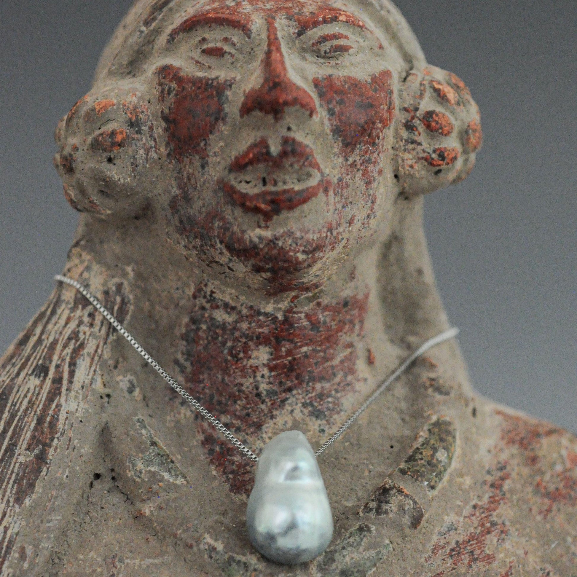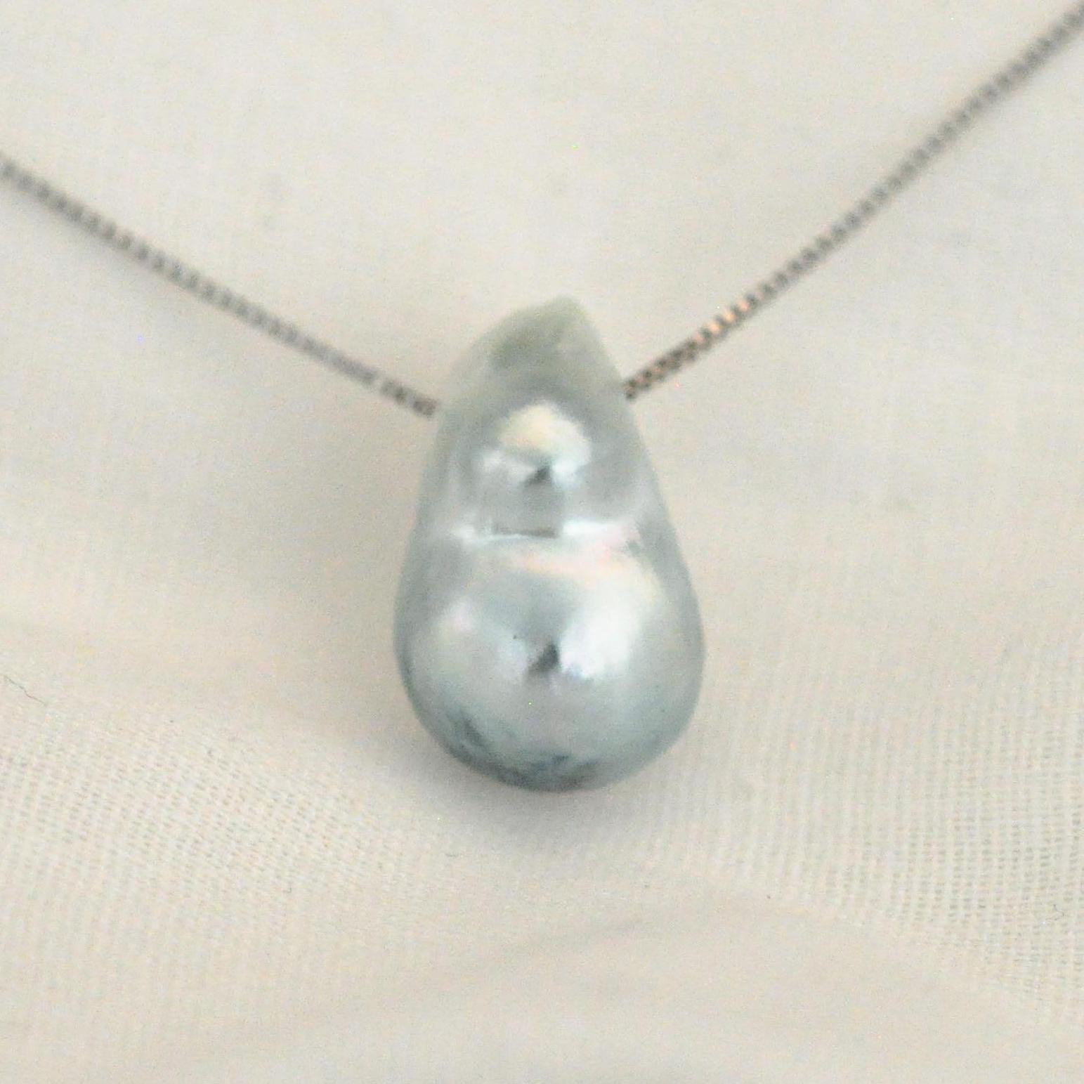 Tammy - Floating pearl pendant necklace. Natural blue gray South Sea pearl installed on a Rhodium plated solid sterling silver box chain. Easy to care for. Free shipping within the US.