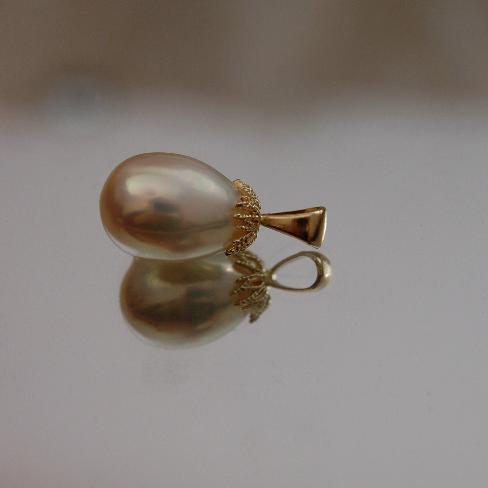 OOAK (one of a kind) Zyta would be an exceptional styling option for a bride on her wedding day - or very special Anniversary gift - or a spectacular gift for a birthday, or graduation. Very large 15mm x 11mm ivory blush freshwater drop pearl pendant set in solid 14kt gold - no plating.